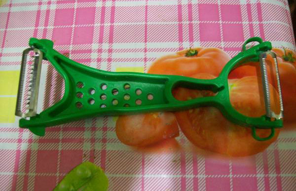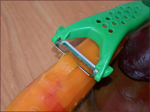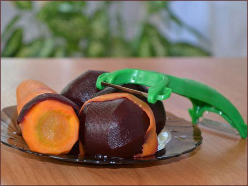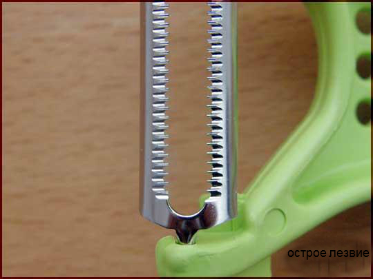 Она прекрасно очищает овощи от кожуры, нарезает их соломкой, очень удобна в использовании. Овощечистка имеет два лезвия, одно лезвие шинкует овощи как терка корейка, другое очищает от кожуры - нож экономка. Лезвия ножа сделаны из качественной стали.