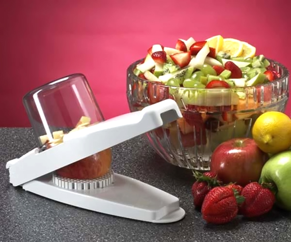 Вы будете поражены тем, как великолепный Найсер Дайсер Nicer Dicer нарежет свежие томаты для сальсы или омлета. Выкиньте обычный нож и дайте глазам отдохнуть во время резки лука — больше не будет слез и опасности порезаться, ведь ваши пальцы никогда не касаются лезвий. Все нарезанные кусочки постоянно перемещаются от режущей поверхности-лезвий, в контейнеры сделанной из пластика. На столе больше не будет беспорядка. Nicer Dicer отлично подходит для резки лука, цукини, перца, сельдерея, томатов, вареных яиц, зелени, сыра, чеснока и даже ваших любимых фруктов, таких как яблоки и груши. Он уменьшает время приготовления в половину. Режет и нарезает больше одним быстрым движением. Он гораздо быстрее и безопаснее чем нож.