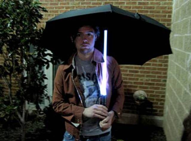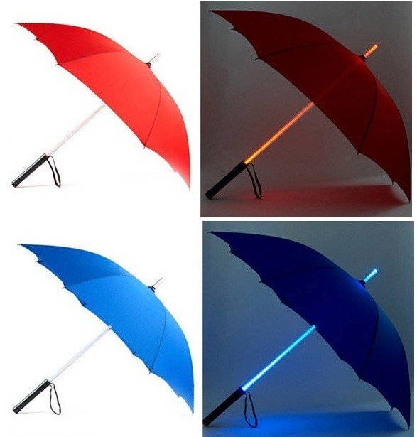 Зонт со светящимся стержнем, с виду напоминает меч Джедая.